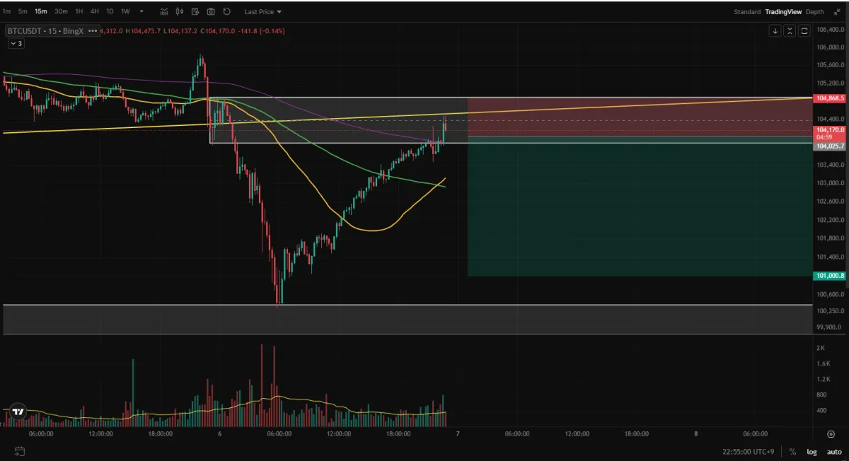 이것은 방금전 100회 트레이딩(7/100)에 바로 이어서 하는 매매이다. (방금 진입했다)