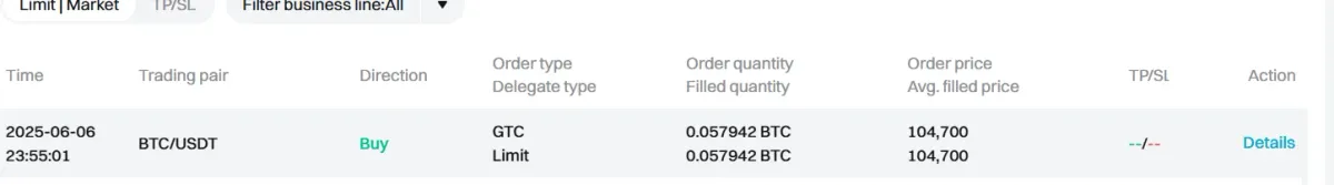 1. 진입 시점: 2025-06-06 23:55 (BTC/USDT 104,700 진입)