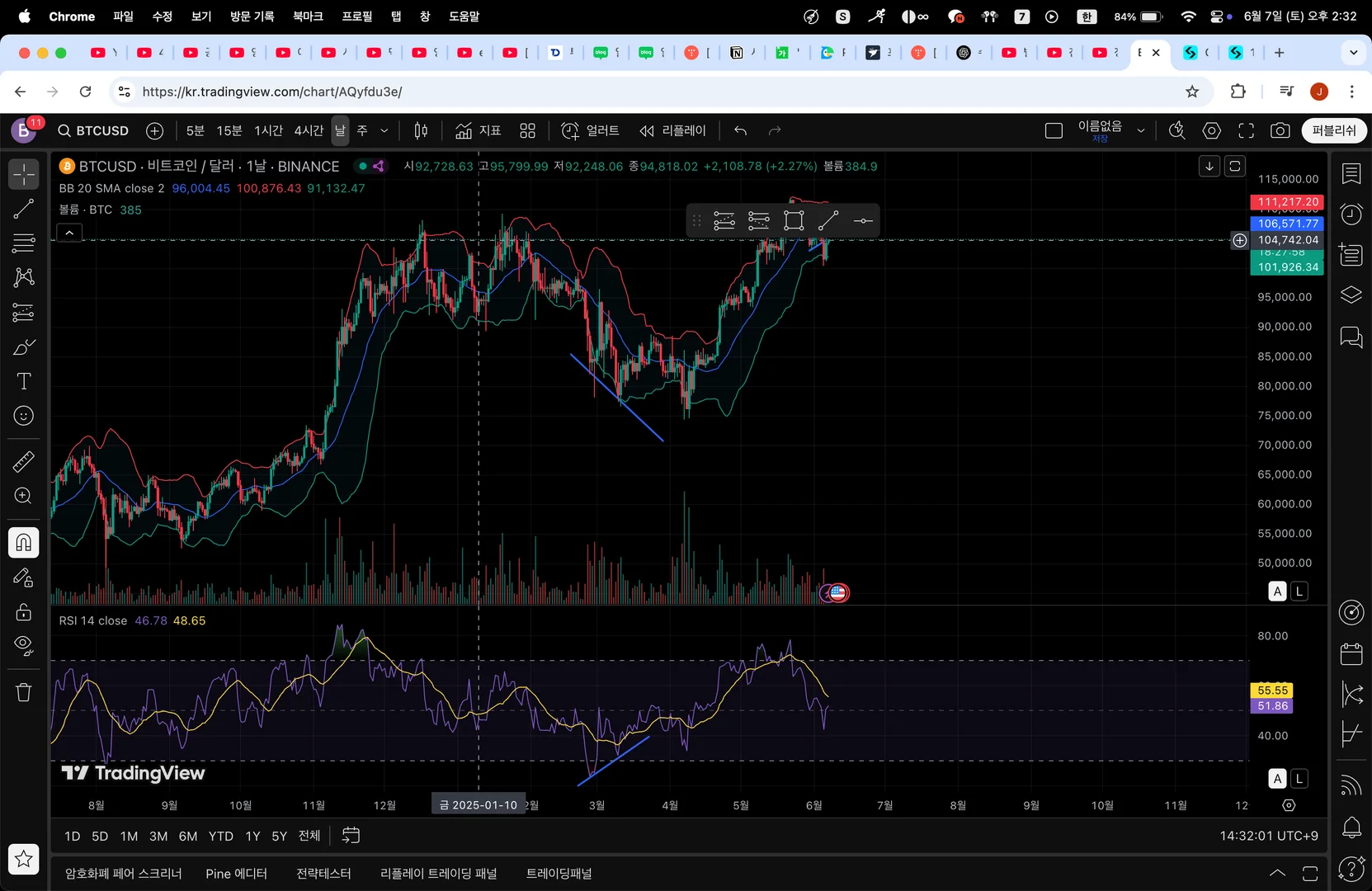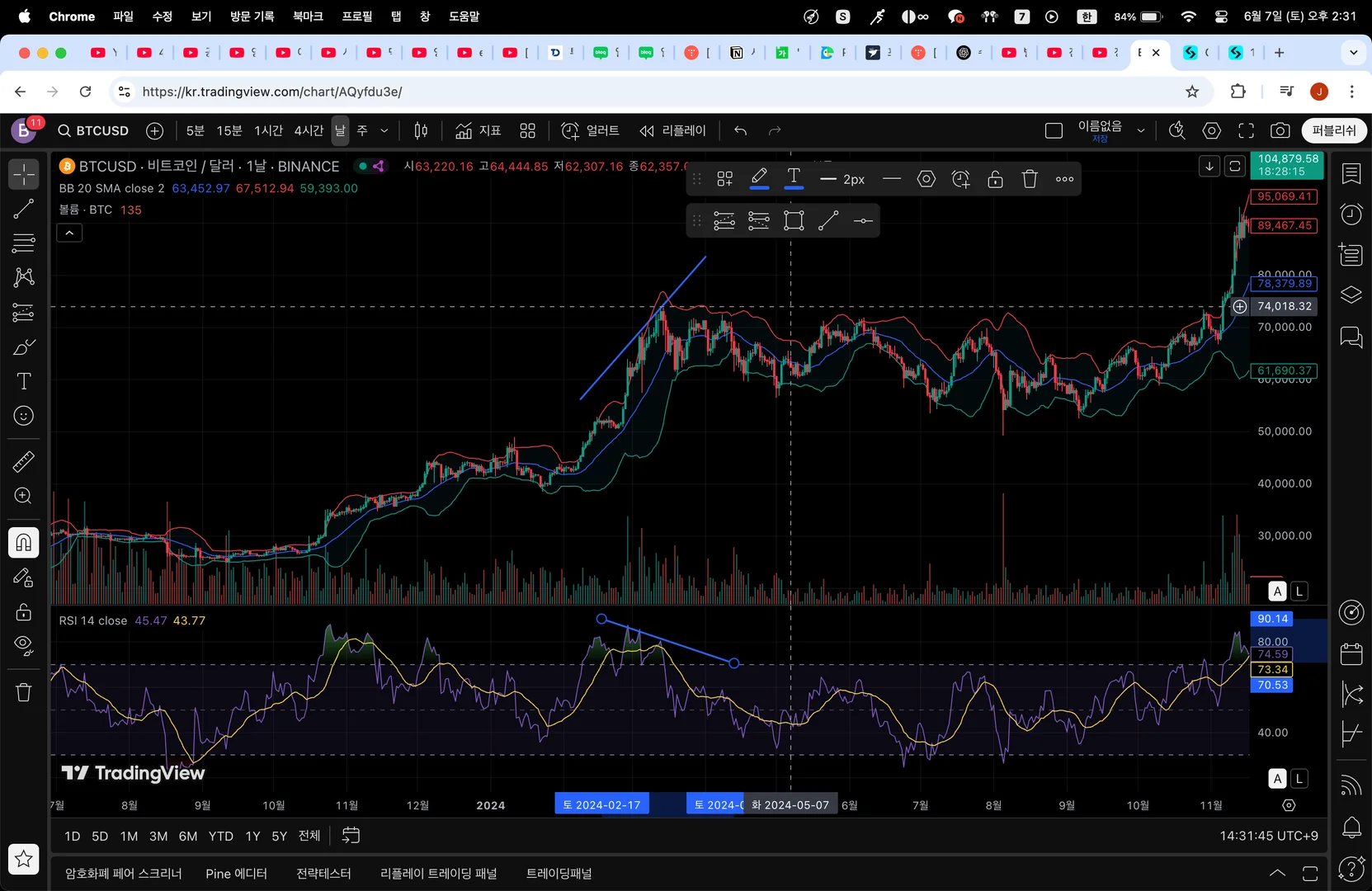 주가 고점은 계속 높아지는 움직이지만, RSI의 고점은 점차 낮아지고 있습니다. 이를 통해 주가가 하락할 것이라는 것을 알 수 있습니다!