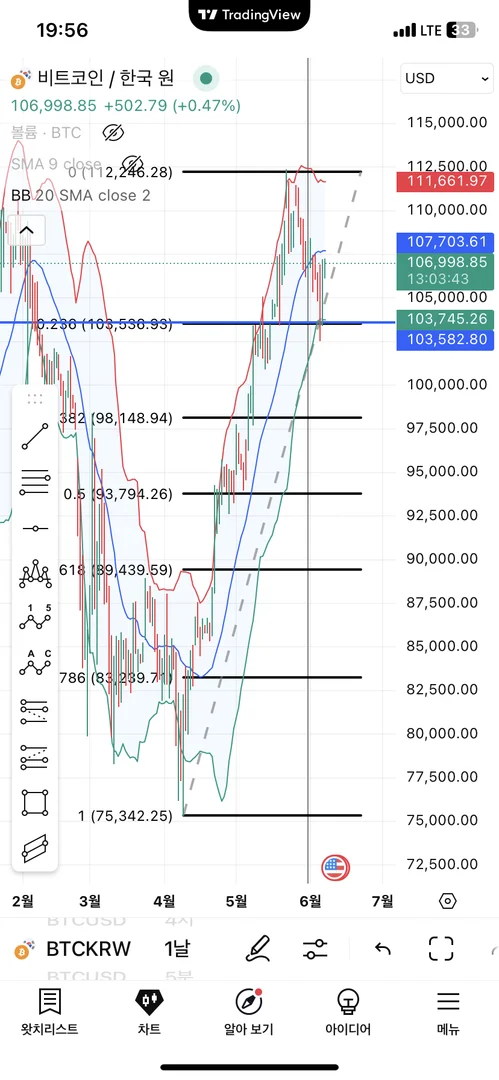 피보나치의 236지지선과 볼린저 밴드의 저점 이탈로 인해