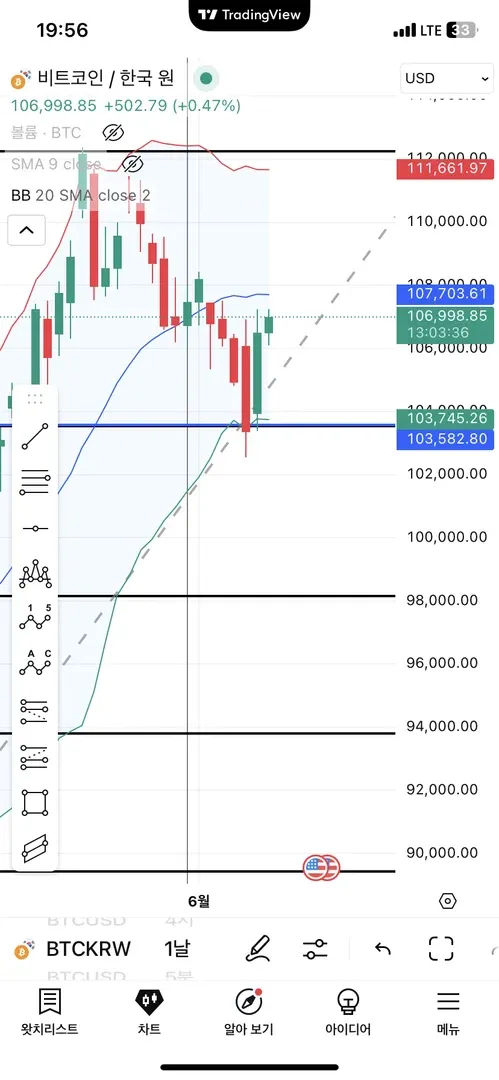 피보나치의 236지지선과 볼린저 밴드의 저점 이탈로 인해