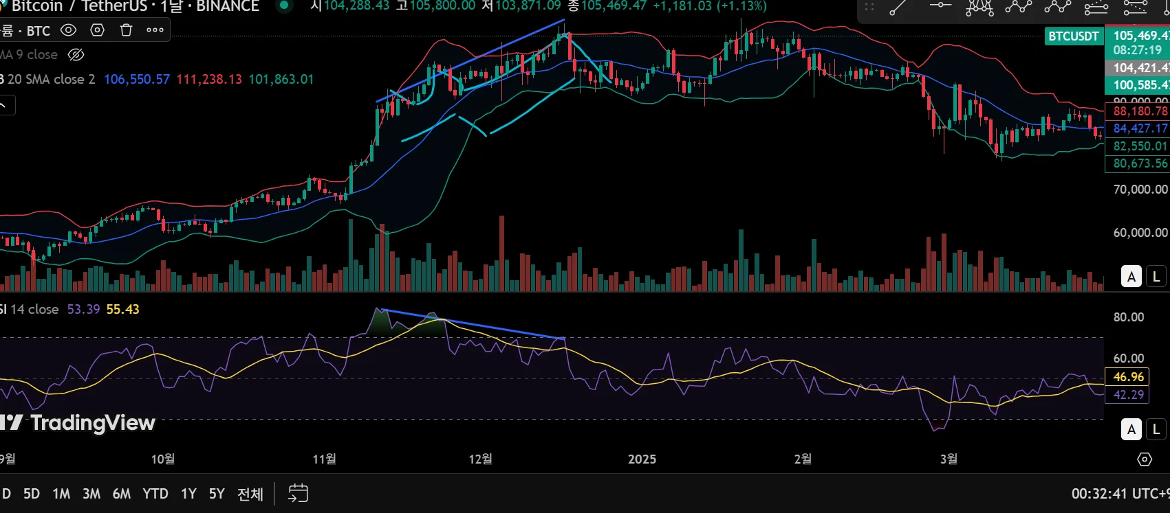 저런 rsi가 보인다면 고민 없이 숏표지션 진입을 했을 거 같습니다.