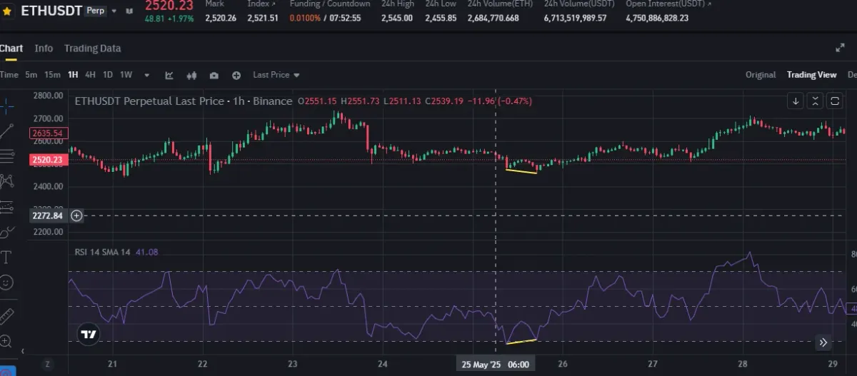 ,M이더리움 5월 25일 1시간봉 차트에서 다이버전스 확인이 되는데 맞는지 모르겠습니다!!