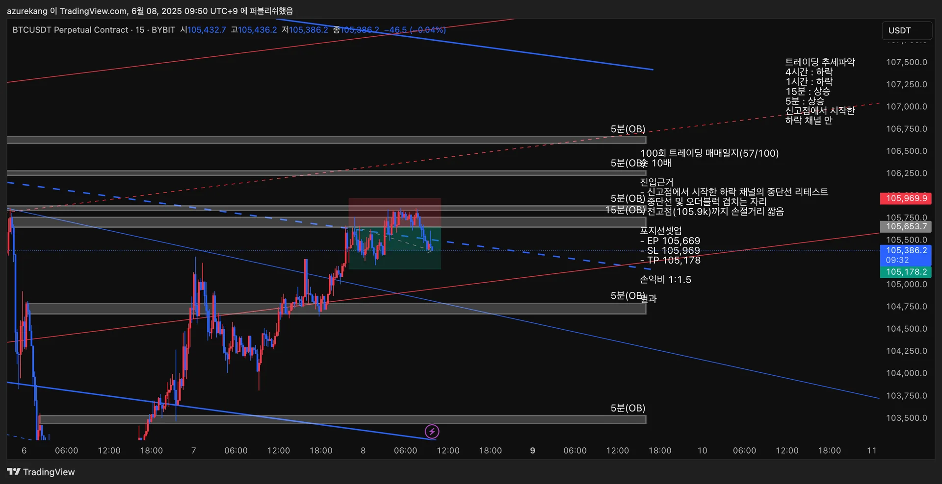 - 신고점에서 시작한 하락 채널의 중단선 리테스트
