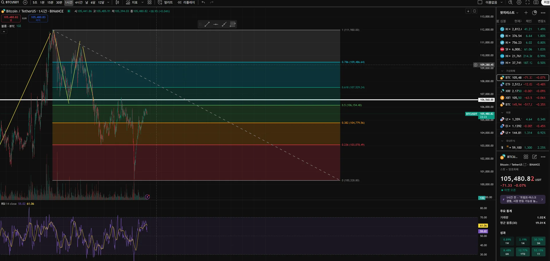 매매근거 : 더블탑패턴이라 판단했습니다. 106744 라인이 넥라인으로 하락추세를 이어가다 이후 리테스트가 나왔습니다