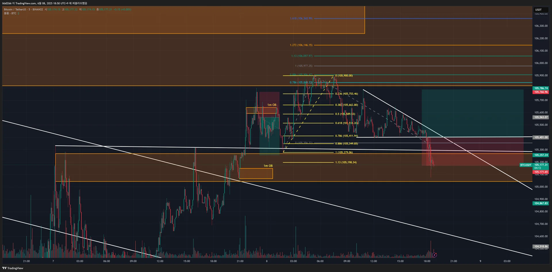 105171.65(피보나치 1.13 스탑 헌팅 방지, 저점깨지는 구간, 1m OB )