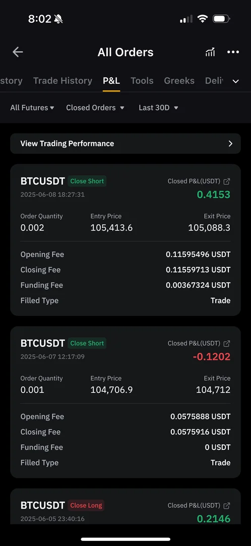 거래소를 새로 가입했는데 아직 손에 안익어서 너무 힘드네요 ㅠㅠ 가장 위에 있는게 수익을 가장 많이 본 거래였습니다. 트레이딩 교육을 받고 나니 숏으로 갈 것 같다고 확신이들어 숏에 배팅했고 딱 들어맞았습니다. 조금씩 알아간다는 것에 큰 기쁨을 느끼고 있어요. 열심히 하겠습니당 :)