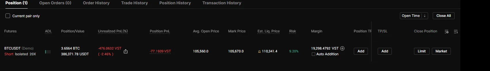 단타로 수익 내보고 싶어서 시도해봤습니다. 가격이 상승했고 , 거래량이 점점 하락 하고 있고 고점의 하락도 보여서 숏 포지션 기다리다가, 삼각수렴 패턴으로 깨지고 방향을 잡기를 기다렸습니다. 삼각수렴이 깨지고 하락으로 떨어지는 것을 보고 숏으로 진입했는데. 예상과 다르게 고점이 깨지면서 상승 추세로 바뀌어서 적은 금액으로 손절 했습니다. 성급한 마음으로 진입한거 같아서 좀더 기다려보고 진입했어도 좋았겠다 싶었습니다. 생각보다 계속 차트를 보면서 패턴이나 보조지표에 익숙해지는 시간이 많이 필요할거 같습니다.