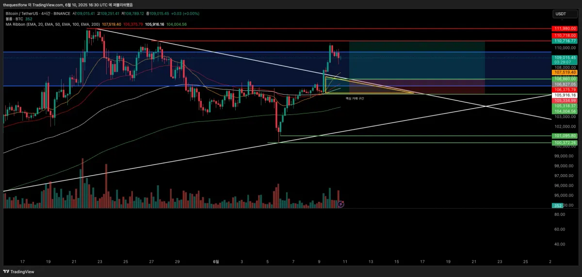 현재 바로 포지션 잡기보다는 삼각수렴 상단 지지 라인에서 포지션 진입