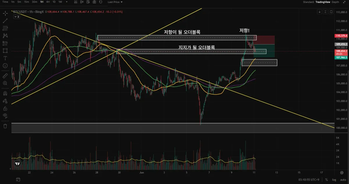 지지가 되리라 예상했던 오더블록에서 지지중 (그래서 여기서 반익절 했고 나는 반만 들고 지켜보고있다..)