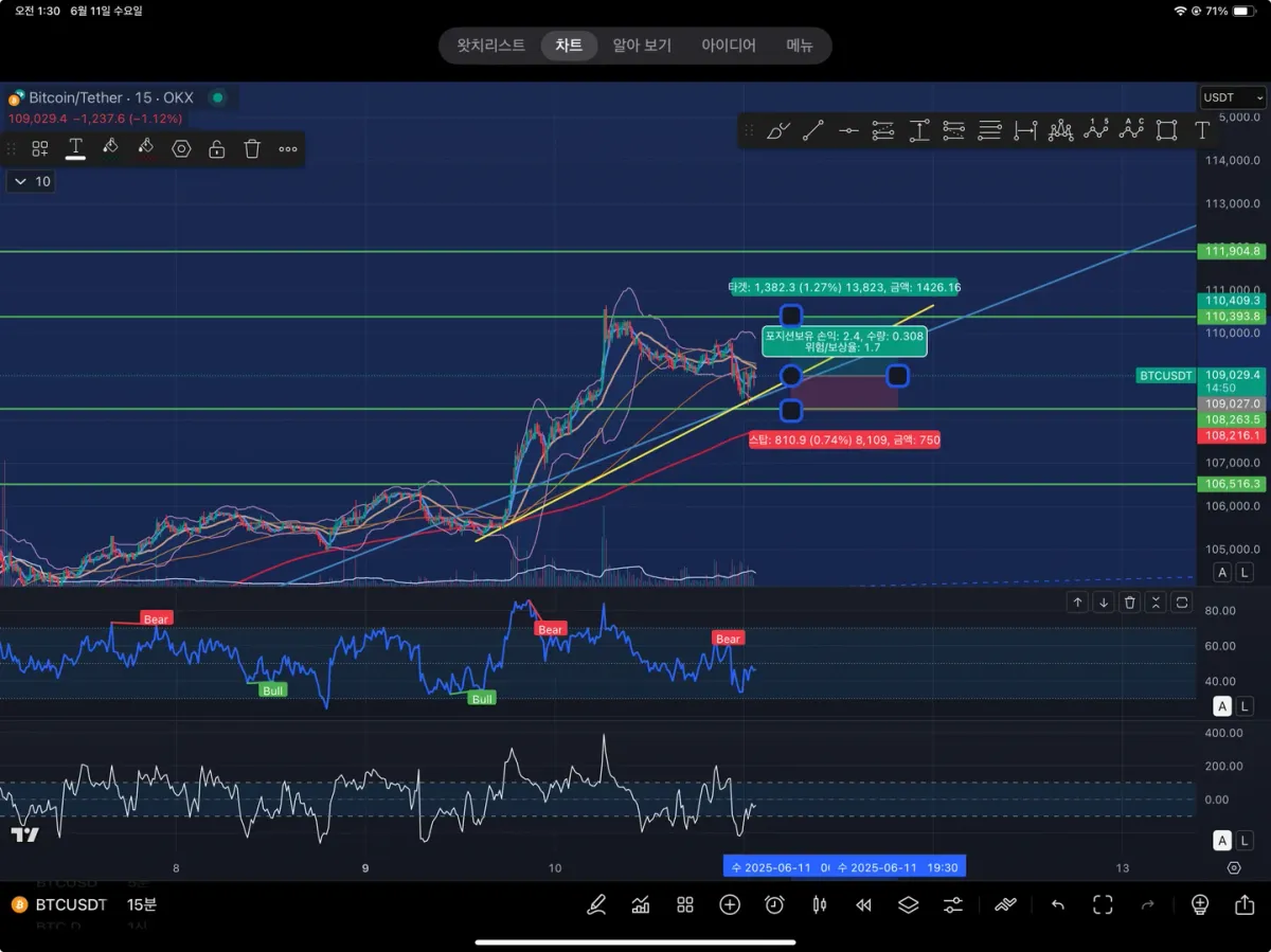 110393에 반익절 걸어놨으나, 110360.5까지 찍고 빠짐.