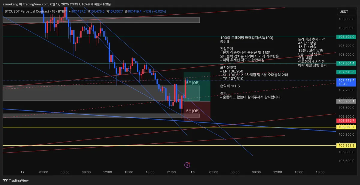 - SL 106,512 2차저점 및 5분 오더블럭 아래