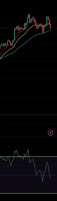 일봉으로 본 RSI에서 하락다이버전스가 나타났습니다.