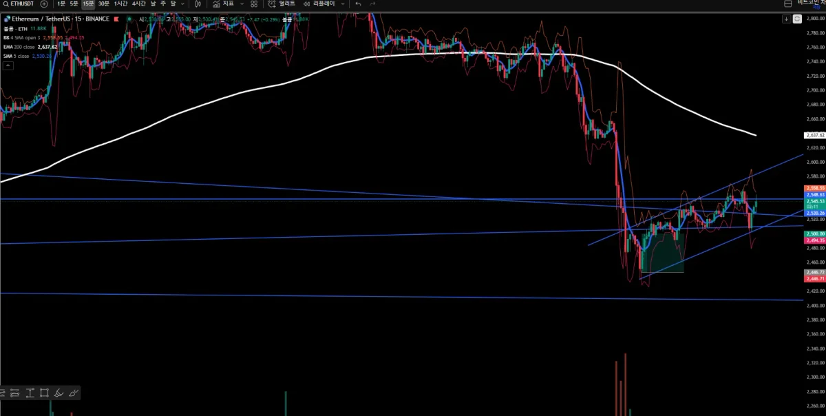 RSI또한 과매도 지점까지 떨어지고 4시간 볼린저밴드 하단을 찢고 내려가서 과감히 100배 레버리지도 롱 체결 하였습니다.