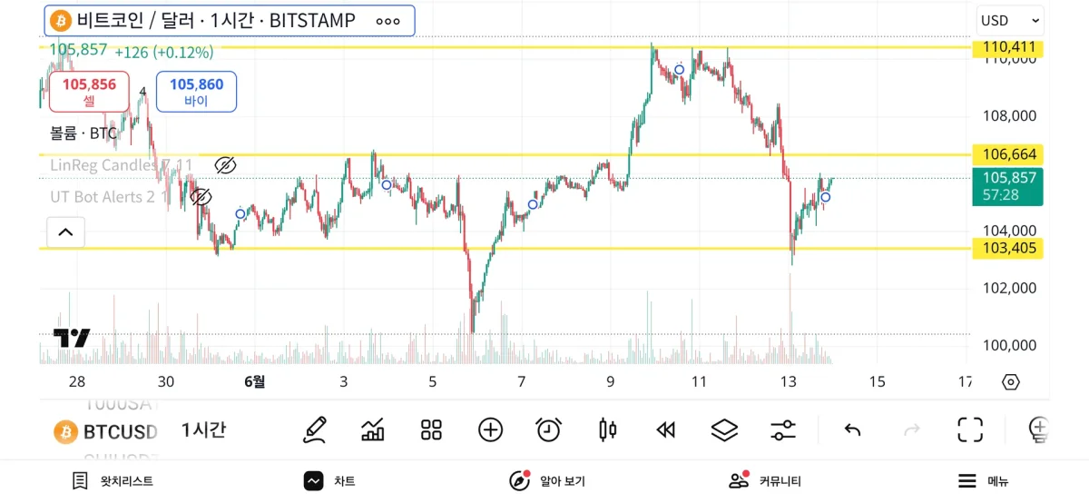가운데 라인은 현재 진행중인 캔들에 영향을 주지 않을까 싶어서 한번 같이 작도해보았습니다.