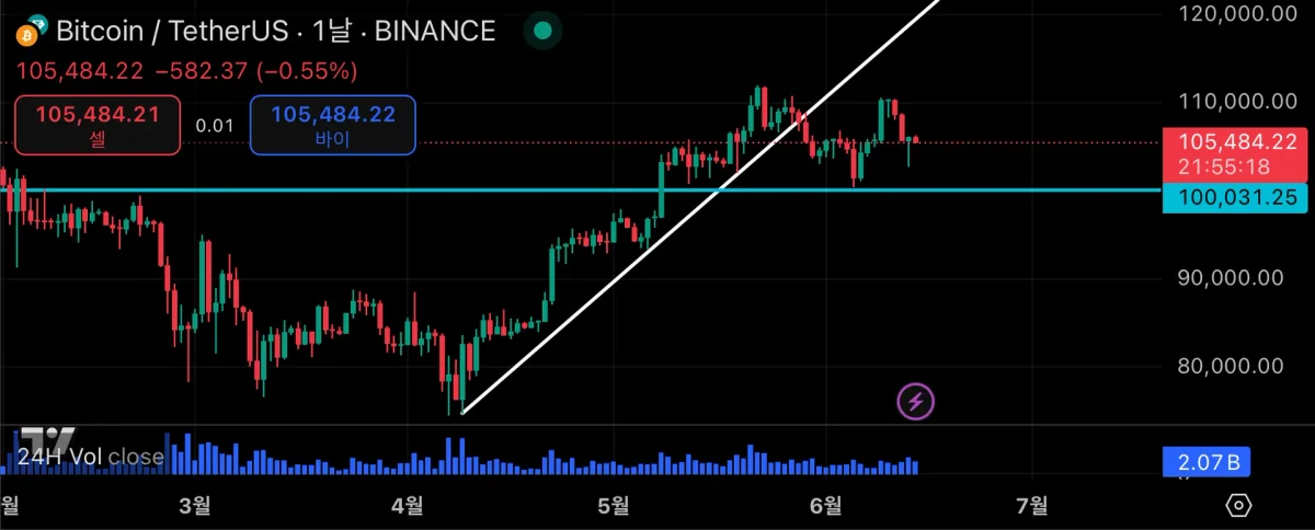 유의미한 추세선을 작도해봤고요, 하지만 현재 그 추세선을 뚫고 하락하는 모습을 볼 수 있습니다.