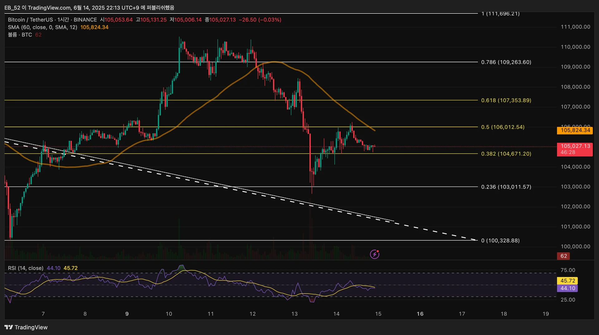 손절가에 다다르면 0.382 지점에서 지지를 받고 상승할 지 , 지지를 하지 못하고 하락하게 되면 숏 진입을 고려해볼 것 같다.