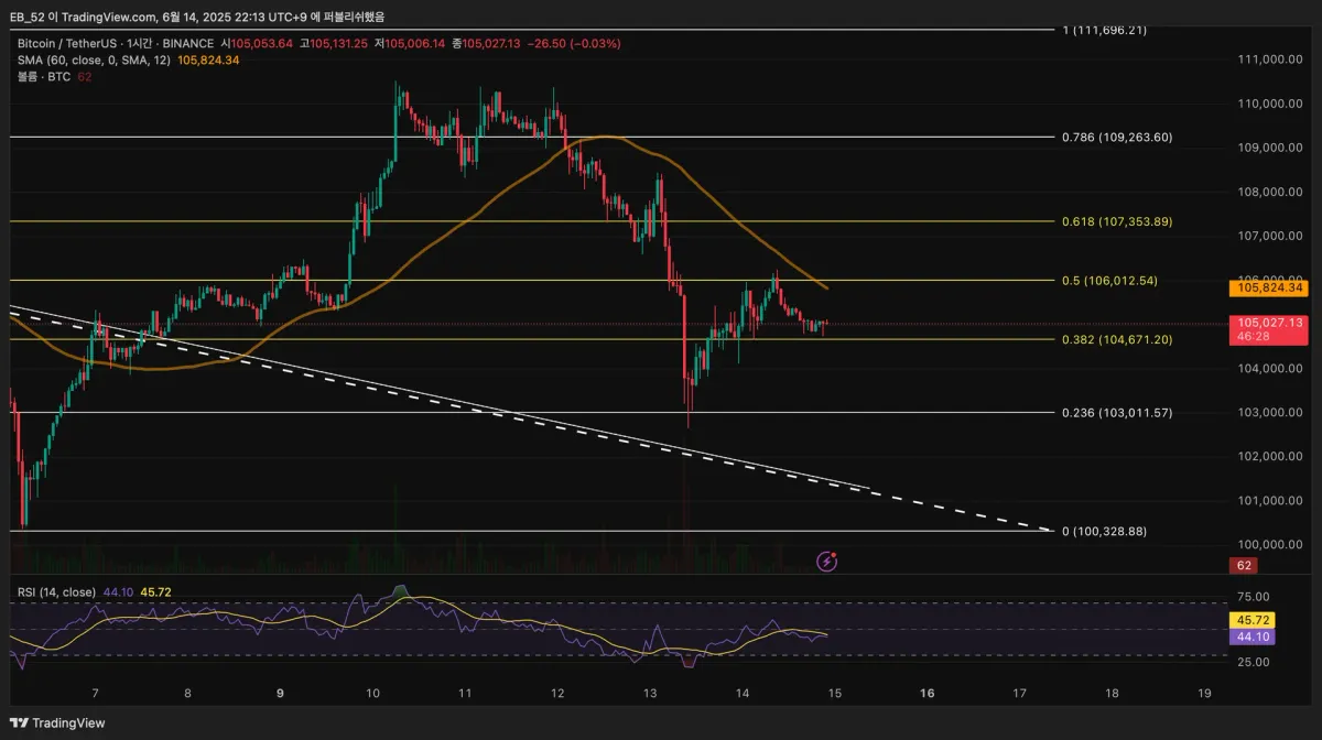 손절가에 다다르면 0.382 지점에서 지지를 받고 상승할 지 , 지지를 하지 못하고 하락하게 되면 숏 진입을 고려해볼 것 같다.