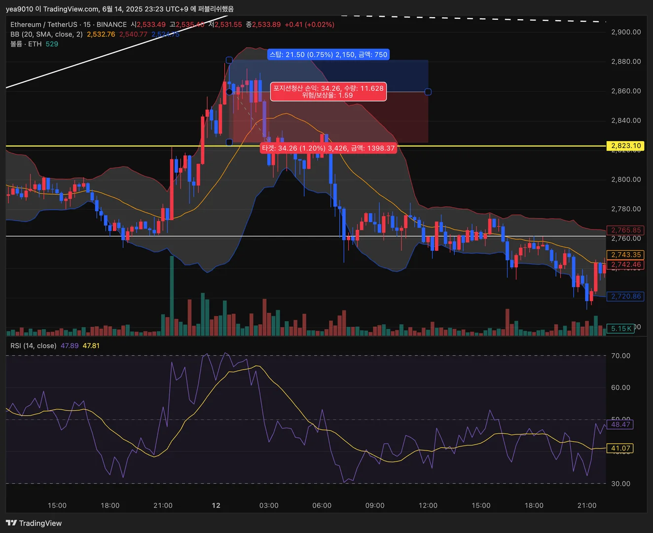 6월 12일 볼린저밴드와 RSI를 이용한 단타법 강의를 보고 숏으로 시도해 보았습니다