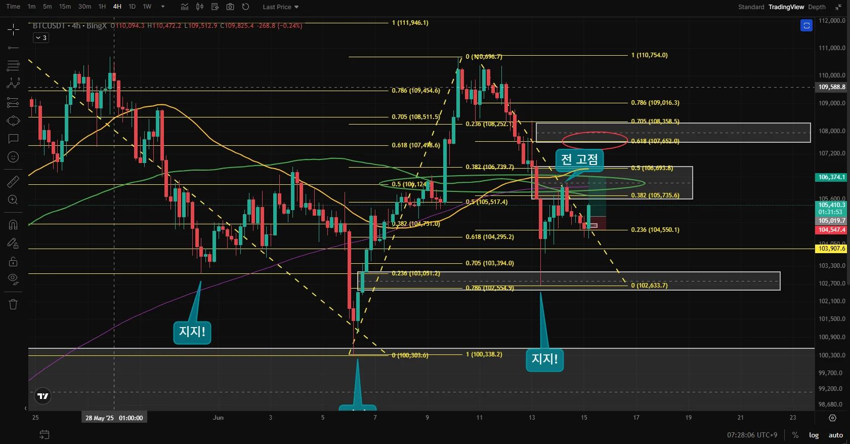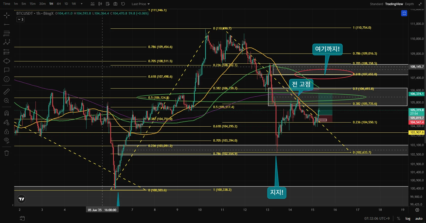 - TP 106,254.2 (이것은 1차 익절가다. 여기까지 1차 익절후 절반정도는 그냥 홀딩할거임... 될대로되라. 반익절 되는순간 스탑로스 올려서 본절가에 걸꺼니까)