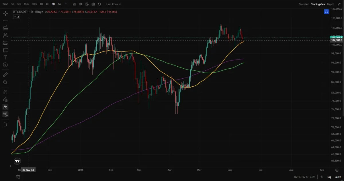 비트코인 주봉, 일봉 모두 저점과 저점, 고점과 고점을 높여오는 상승추세였다