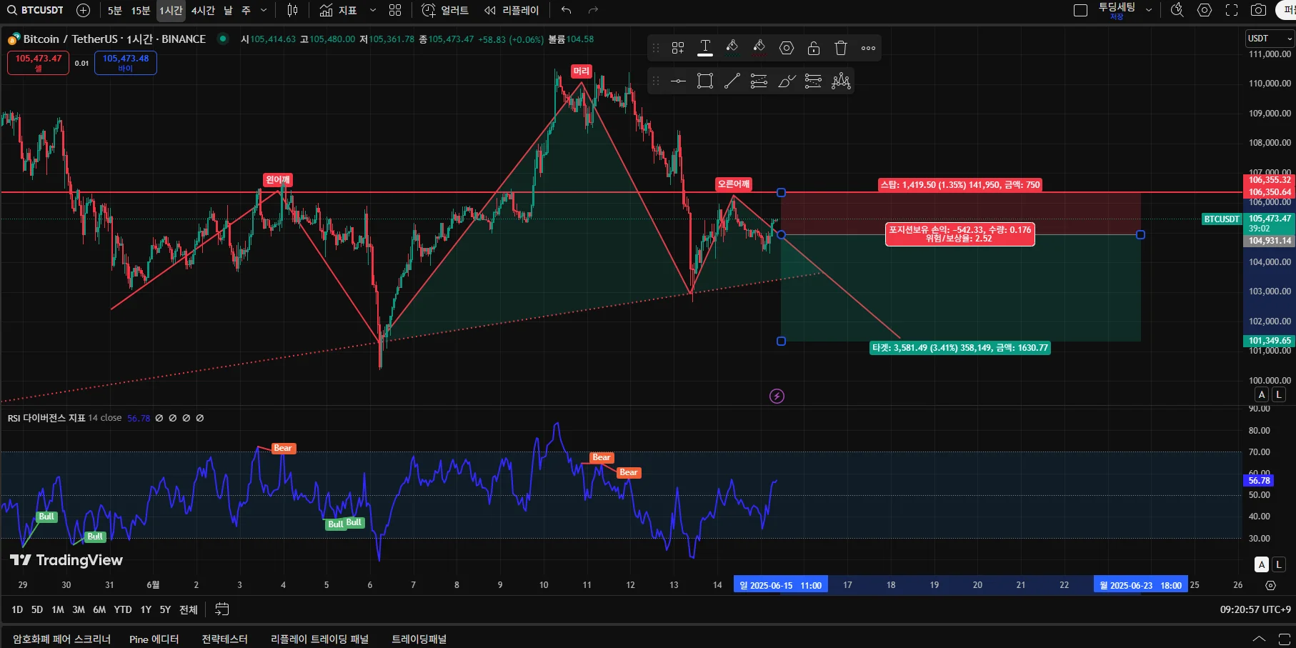전체적인 흐름으로 급격한 하락이후 반등하는 모습을보였으나 저항선을 뚫지 못하는모습을보고 헤드앤숄더 패턴이 생각났다 현재7%손실중이나 아직 sl 근처에 가진 않았으므로 조금더 홀딩해볼 생각이다