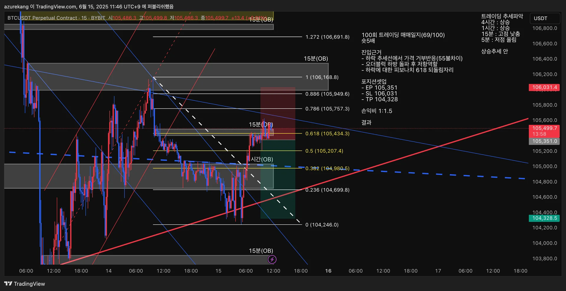 - 하락 추세선에서 가격 거부반응(55불차이)