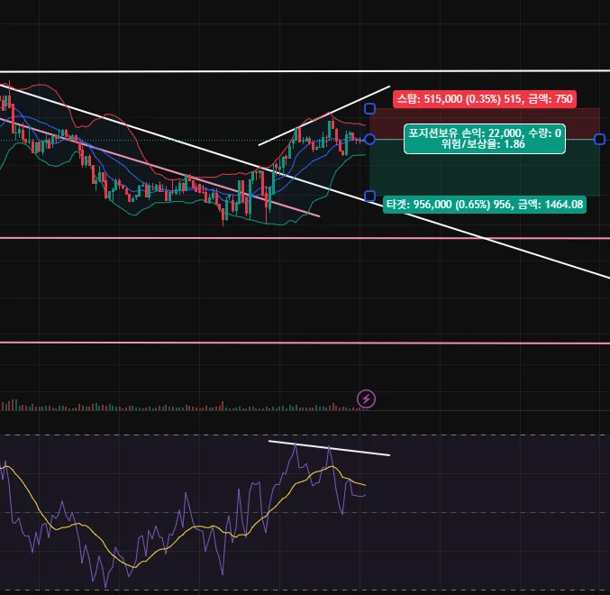 진입근거 : RSI 다이버전스 발생 후 하락 발생 으로 진입 후 지지선 부근 익절라인 잡음
