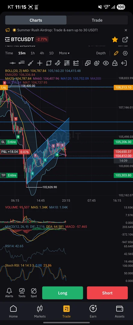 불 플래그 패턴을 예상하고 숏 포지션 진입, 지지 저항선을 고려하여 TP/SL 설정하였으나, 패턴 미형성 된 후 손절,,