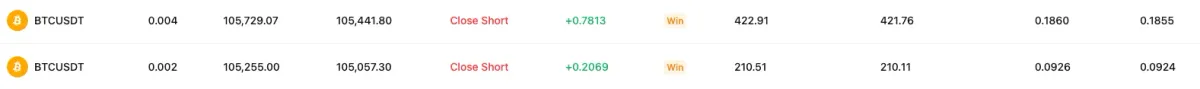 상승 추세선 이탈하여 숏 진입 후 소폭 하락하여 익절