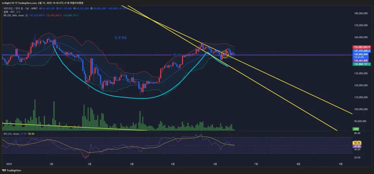 컵앤핸들 차트패턴을 그려보고 동그라미 표기한 구간에서 매매했습니다.