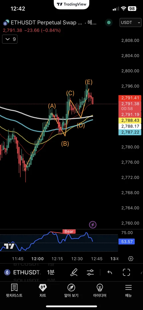 RSI 다이버전스는 4시간 정도는 돼야 신뢰도가 높은 것 같다.