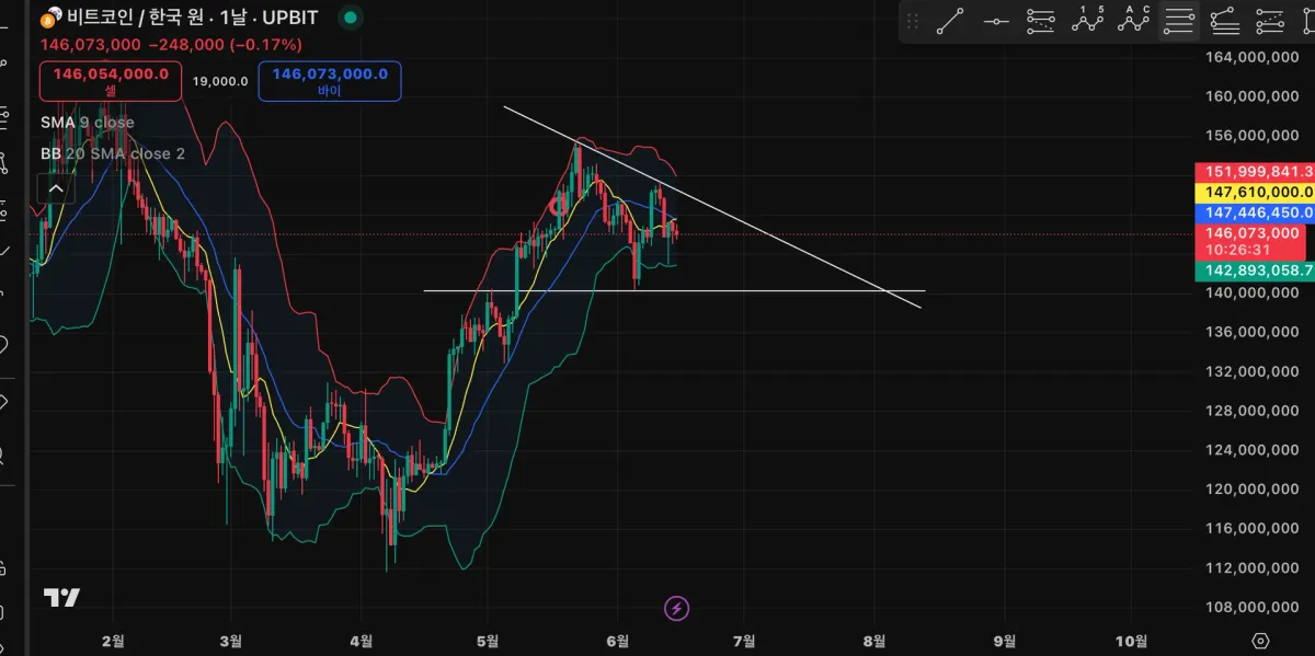 강의 내용에 따르면 투터치 추세선이라 아직 신뢰도가 높지는 않지만 지지선이었던 수평선이 저항선의 역할을 제대로 해준다면 의미가 있는 작도가 될 것 같습니다