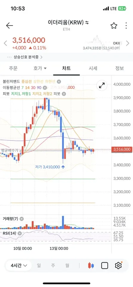 6월 15일 볼린저밴드와 RSI를 이용한 단타법 강의를 보고 시도해 보았습니다