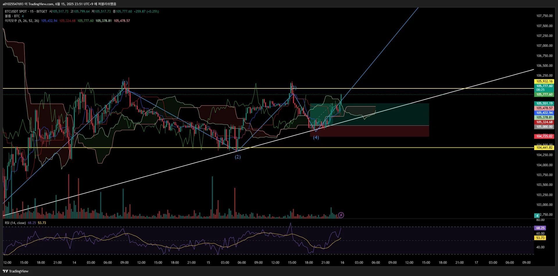 105,930를 목표로 하였으나 추측이 틀렸을 것을 두려워하여 목표지점보다 낮게 익절함