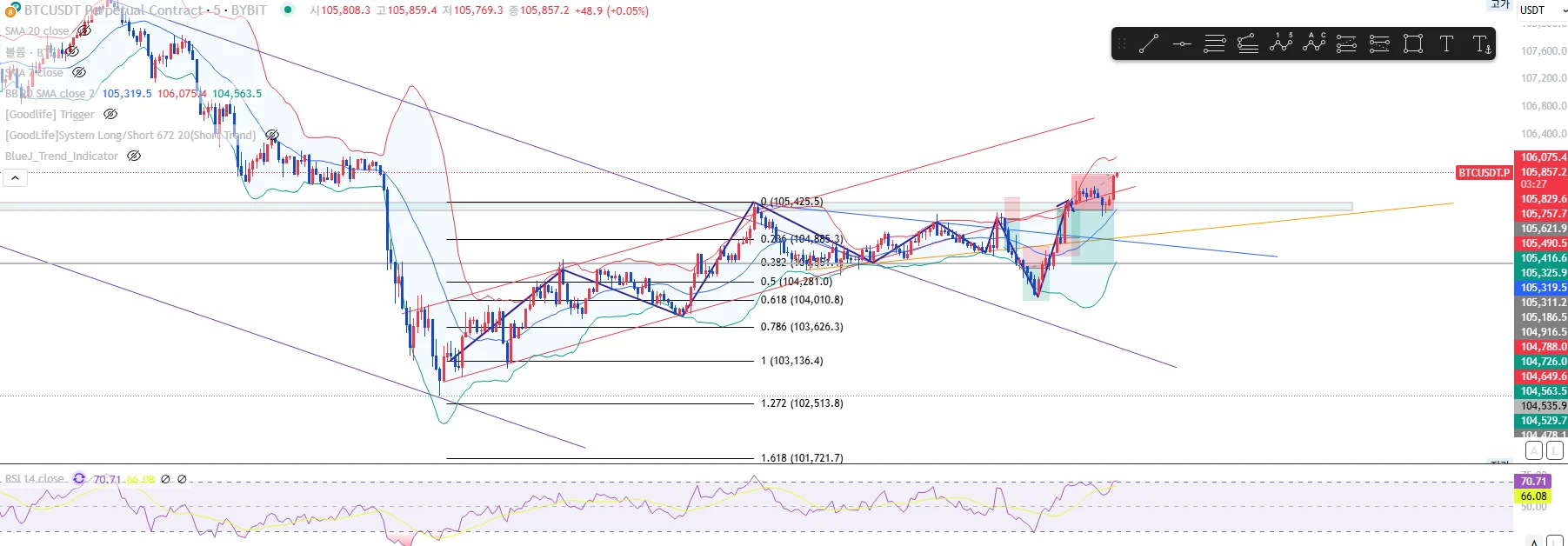-피보나치 0.382부근까지 익절라인 예상