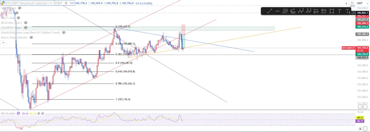 -5분봉 채널 하단 추세선 리테스트 확인