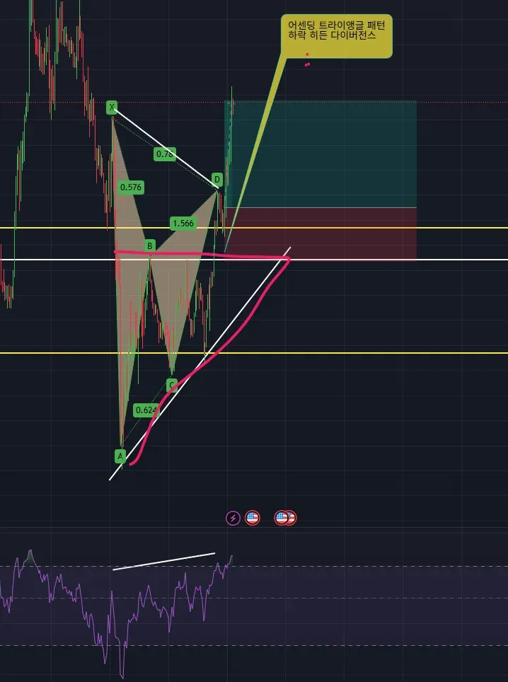 하락 히든 다이버전스 - 단기적 하락이 있을 수 있으나 상승 추세의 지속