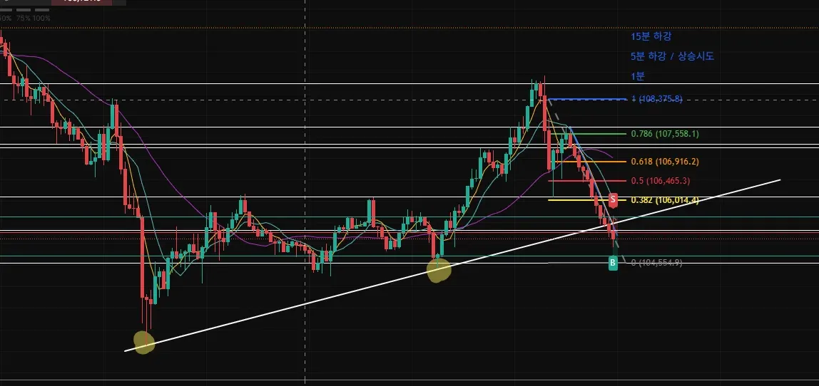 손절은 5분봉에서 하방돌파막힌 지지저항선을 손절라인