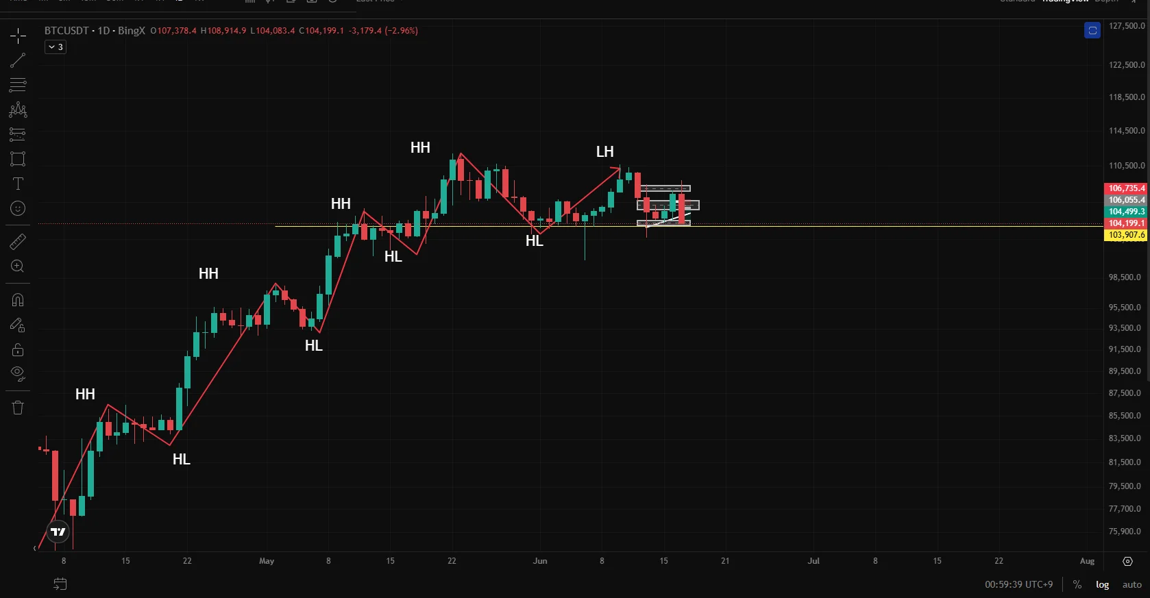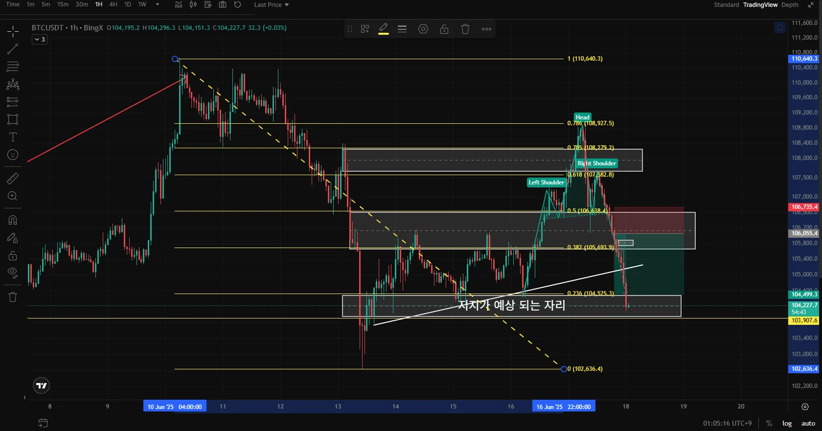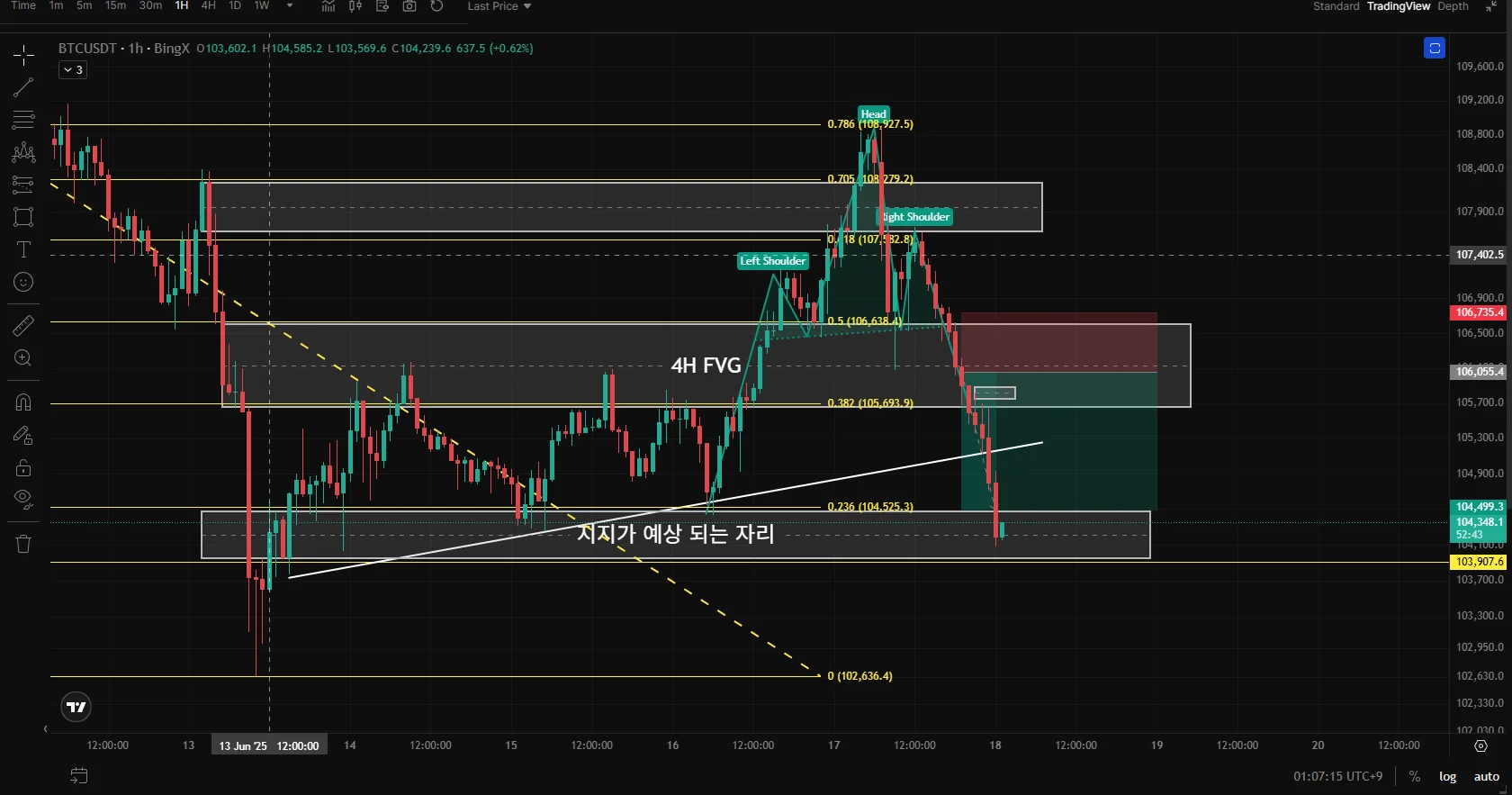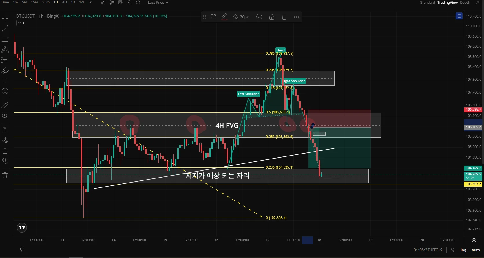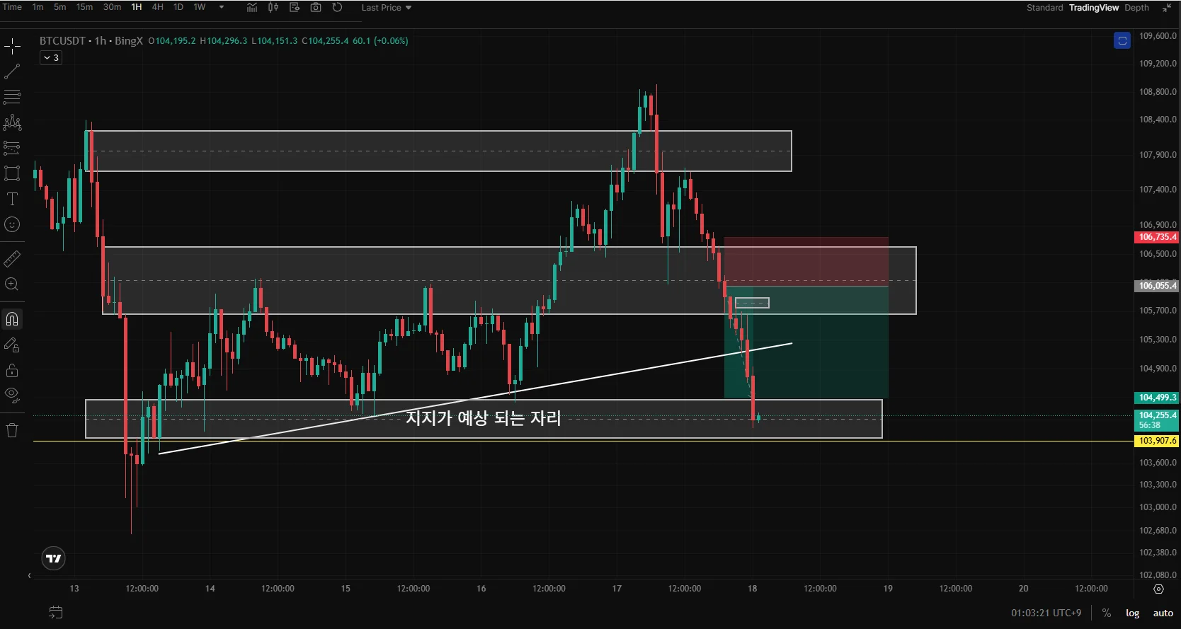 - TP 104,476.4 (이것은 1차 익절가다. 여기까지 80프로 포지션 1차 익절후 현재 20프로 들고 있는중)