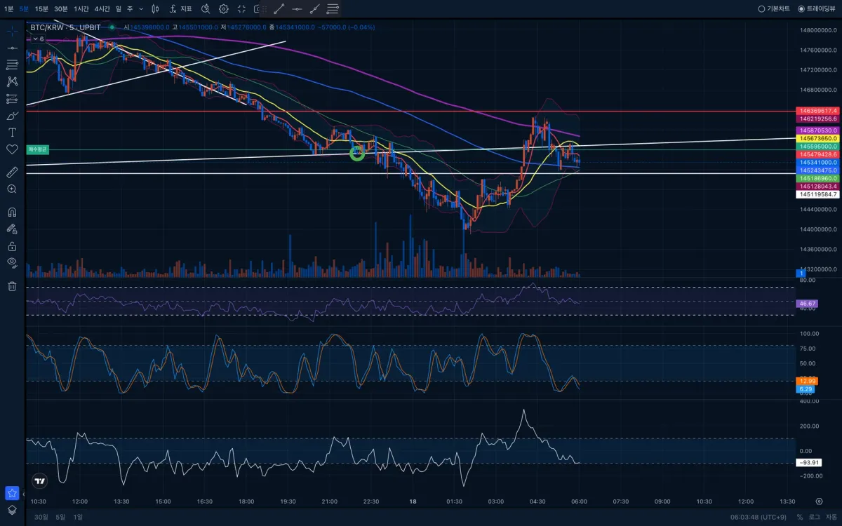 (이후 143,900,000부근에서 반등하며 다시 매수 가격까지 올라옴)