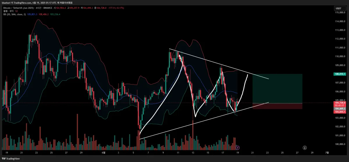 4시간봉 기준으로 삼각수렴 진행중이라 밑부분에서 롱버튼 눌렀습니다.