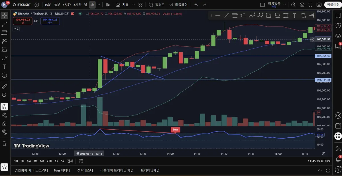 만약 106,124.00 지지 못 할경우 손절