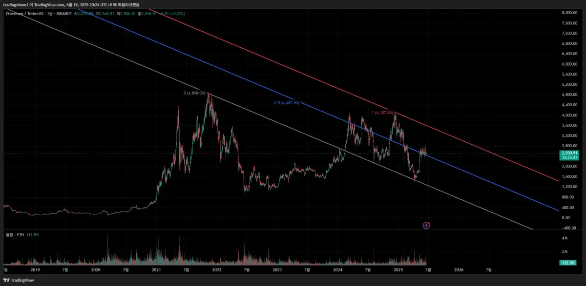 피보나치 채널도 그어보았습니다.
