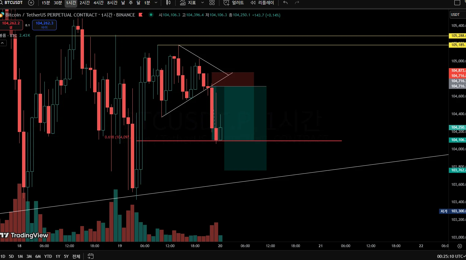 수렴하단 리테스트 숏 진입