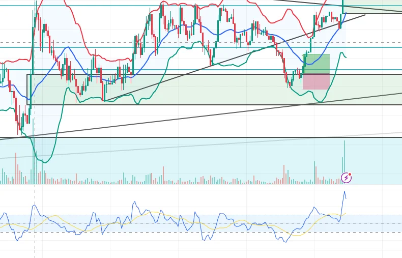 2.5분봉 어센딩 트라이앵글 상반 추세선을 터치 후 반등 가능성