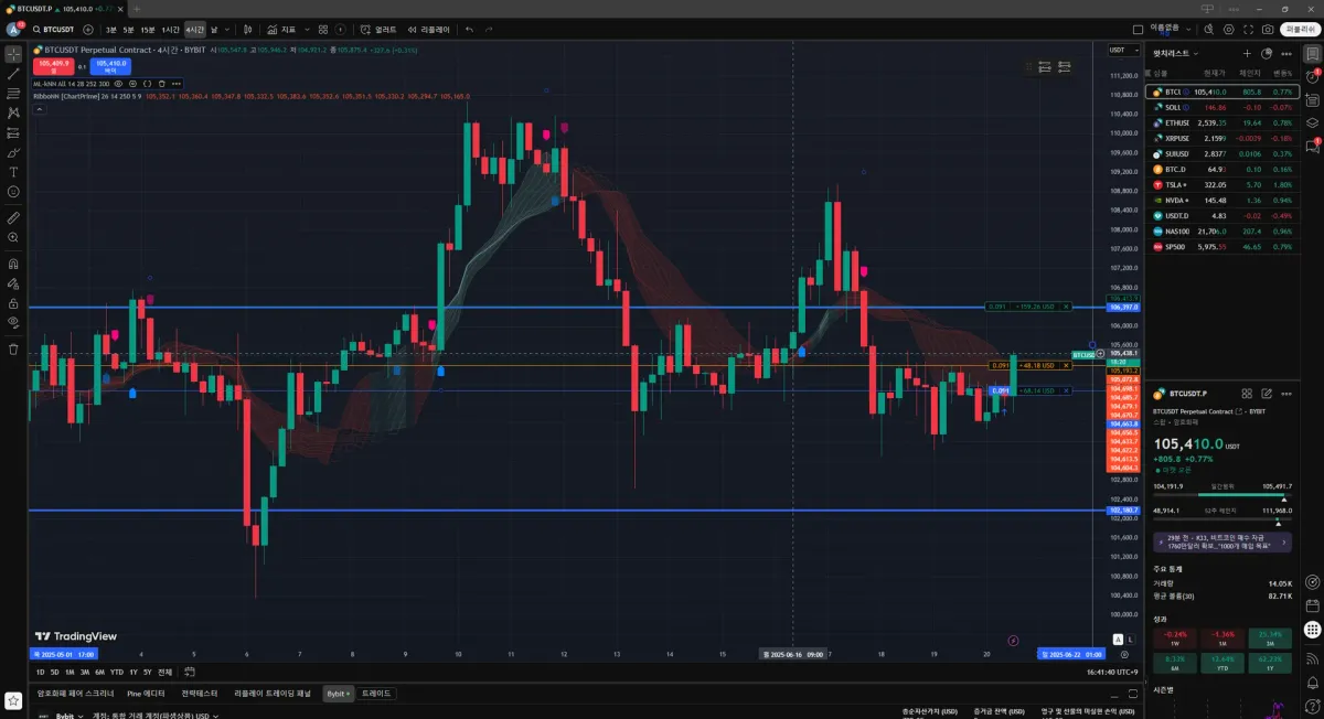 포지션 진입전 일봉상으로 여전히 상승추세에 있고 횡보중이라고 판단하였습니다. 지지선에서 매수를 들어가기로 전략을 세웠고, 그 밑꼬리를 달고 올라온 그 부근을 깬다면 손절을 할 생각으로 진입하였습니다. 결과적으로 100불 정도 이득을 보고 포지션을 종료했습니다.