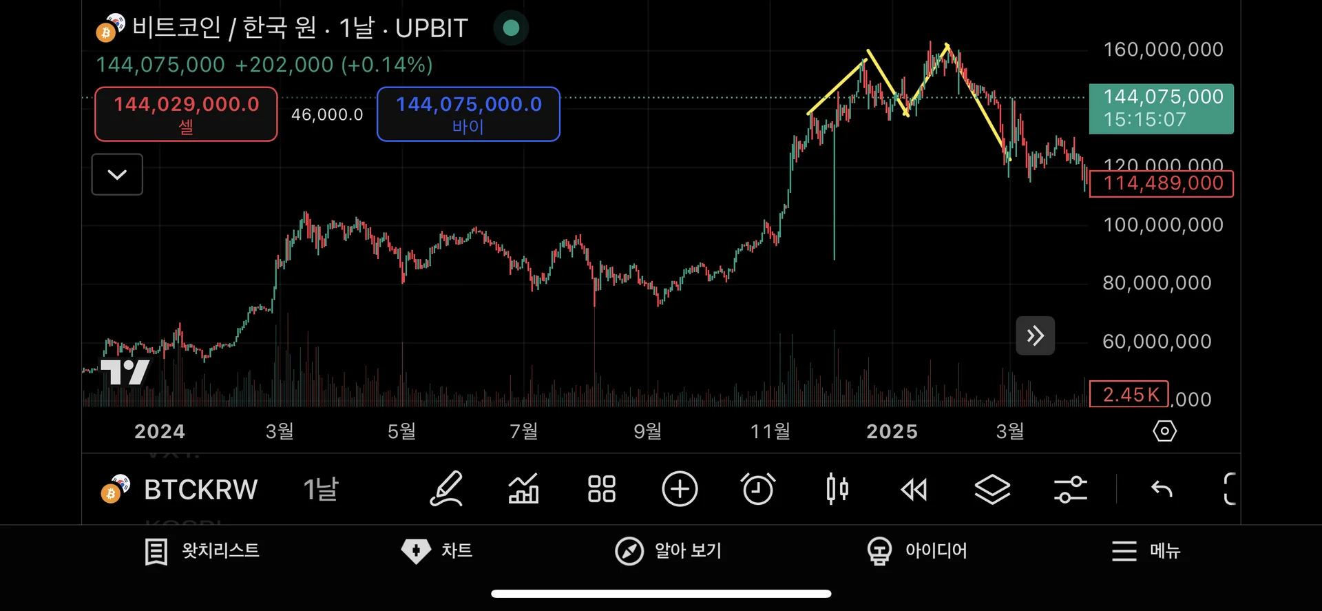 2. 실제 다이버전스가 나온 구간을 체크해서 캡쳐해 투딩 커뮤니티 30일 챌린지 게시판에 업로드해주세요.