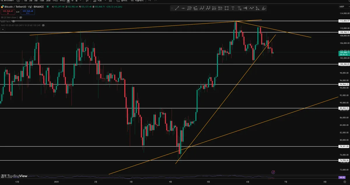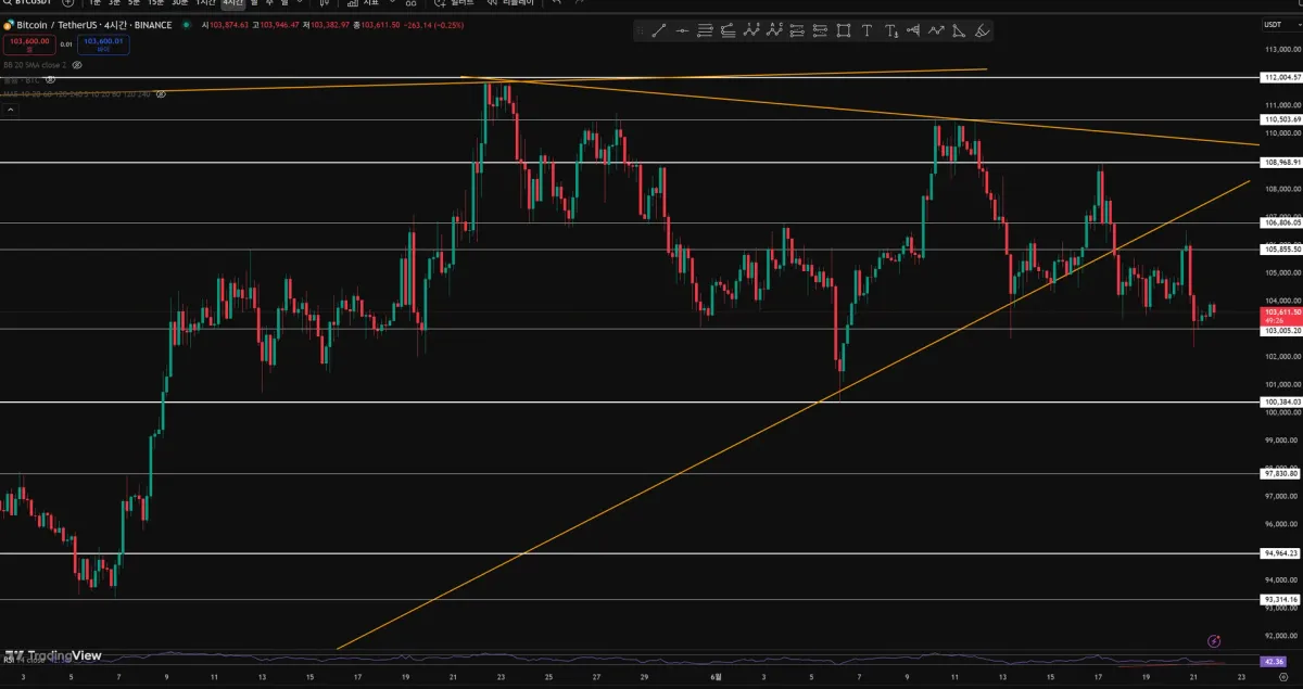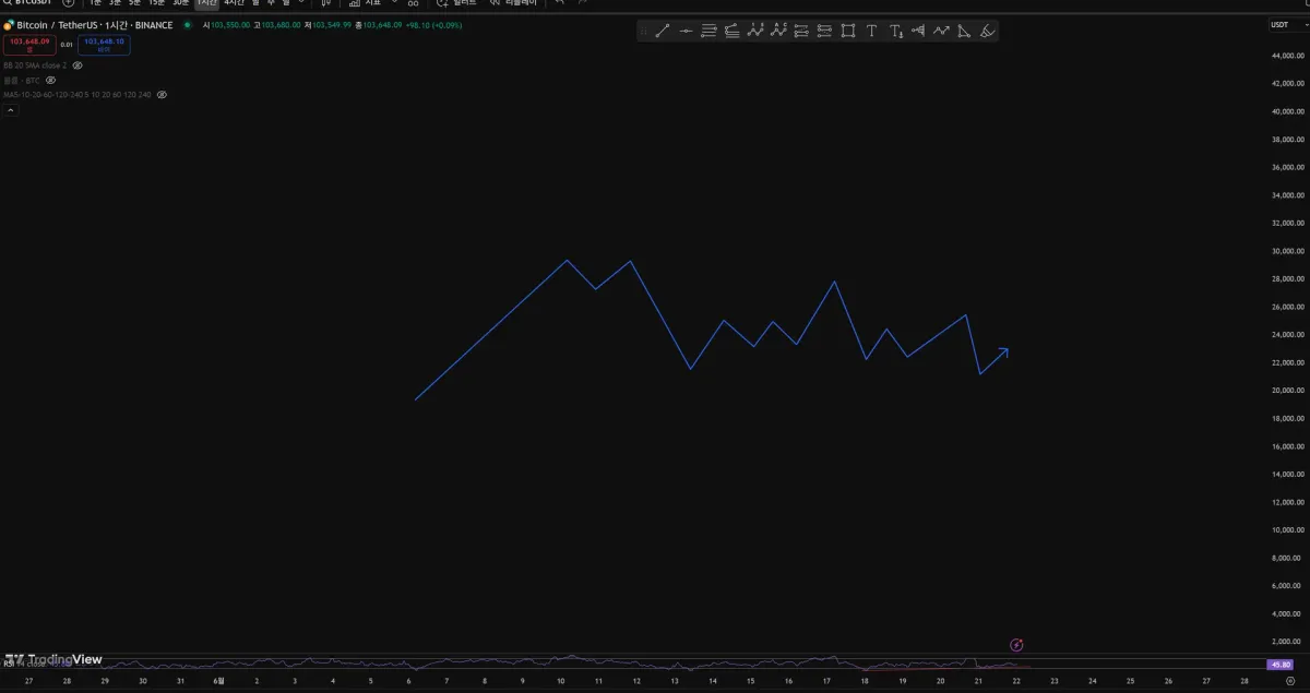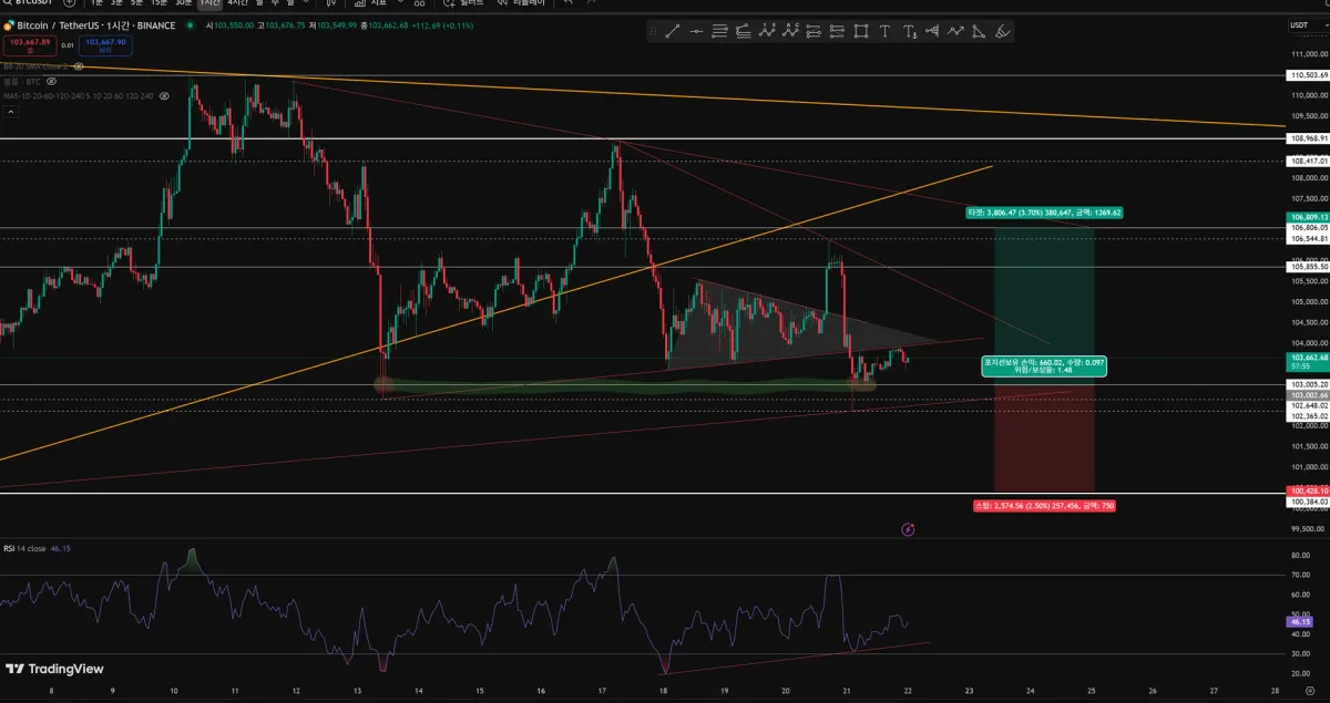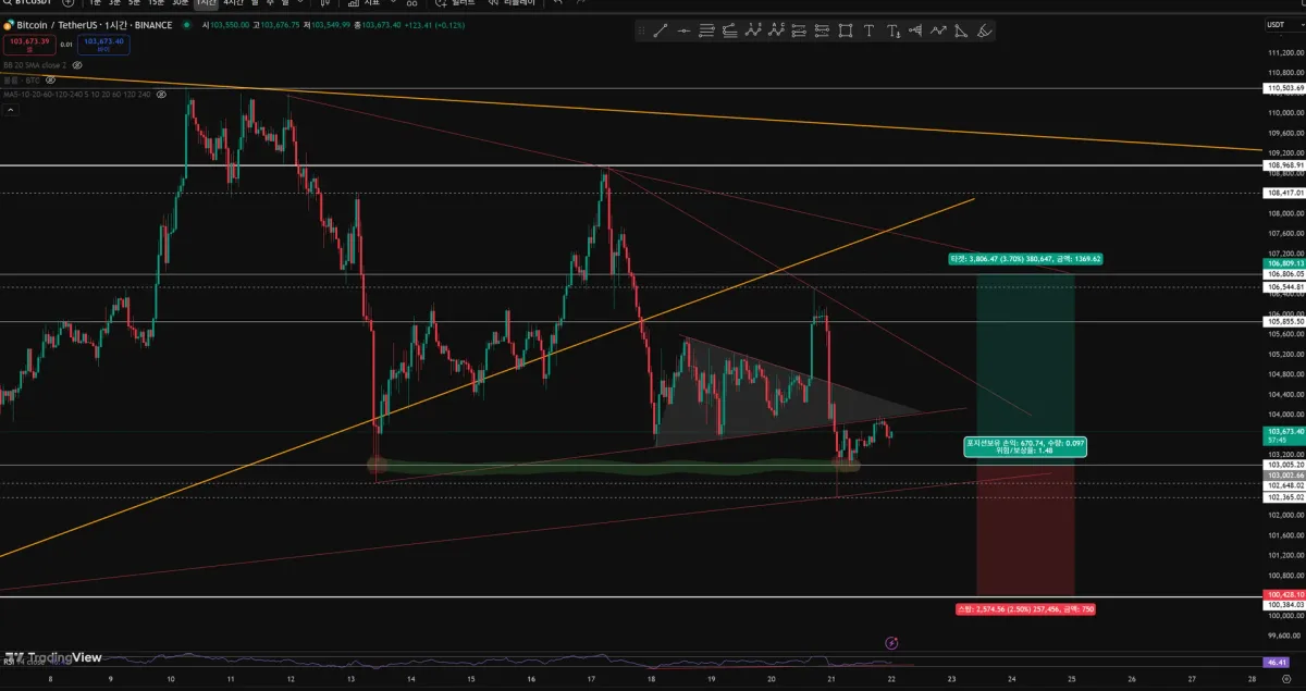 103,005 부근에 롱포지션 진입 예정 / 손절,수익 구간은 그림같이 설정 ^^;;