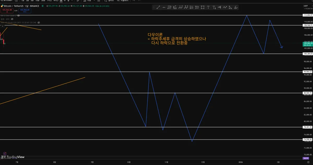 ---> 1시간봉 다우이론에서는 아직 방향성이 정해지지 않았음.